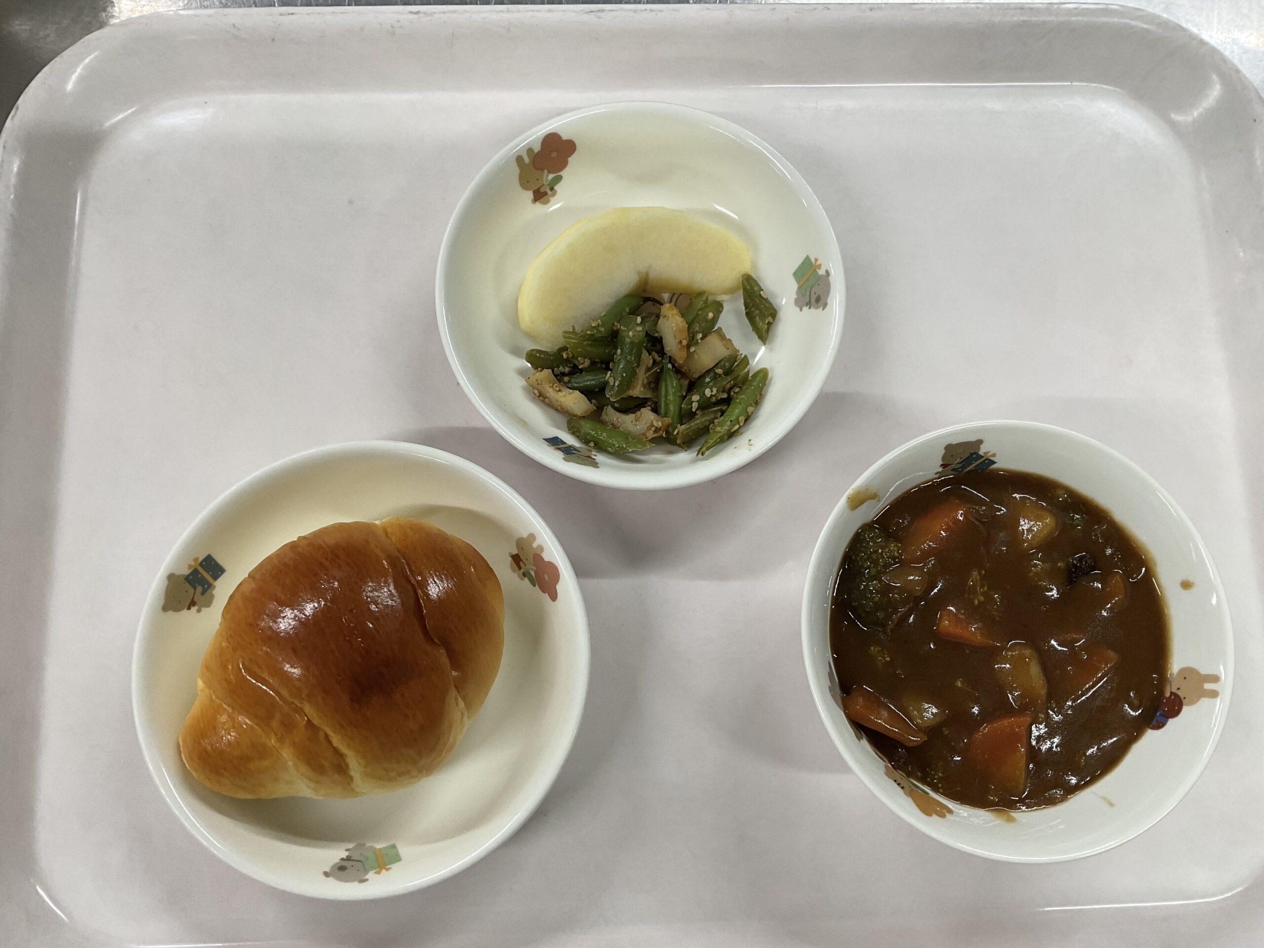 ロールパン ビーフシチュー いんげんの胡麻和え りんご