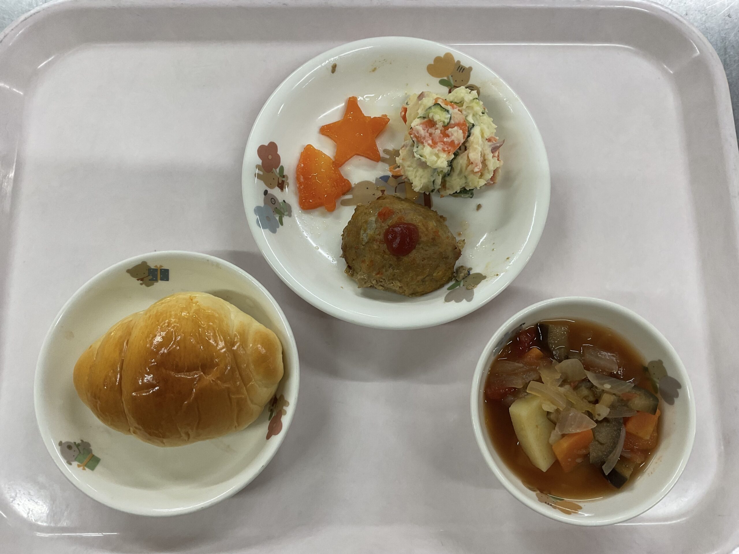 ロールパン ハンバーグ 人参グラッセ ポテトサラダ ミネストローネ
